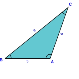 Construct triangle ABC in which |AB|=5cm, |AC|=6cm and |BC|=9cm